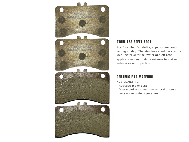 Saltwater Trailer Parts Brake pads set of 4 stainless steel back for marine suit ALKO mechanical calipers post 2016 and also MEHER with pad retaining bolts.